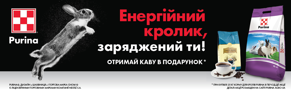 В період з 29 листопада по 24 грудня 2021 р. в торгових точках, зазначених в правилах акції, при купівлі 25 кг корму Purina® для кролів Ви можете отримати в подарунок каву мелену “Кава Старого Львова “Лігумінна” (100 грам/уп).